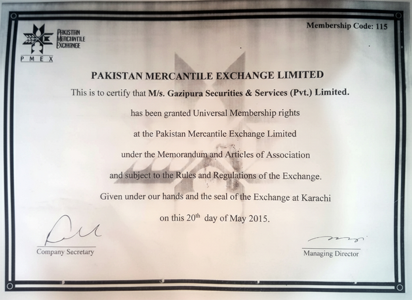 If Gazipura Securities Services Pvt. Ltd. is unable to resolve your issue or complaint to your satisfaction, you may escalate the matter to the Pakistan Mercantile Exchange Limited (PMEX) at the following address: